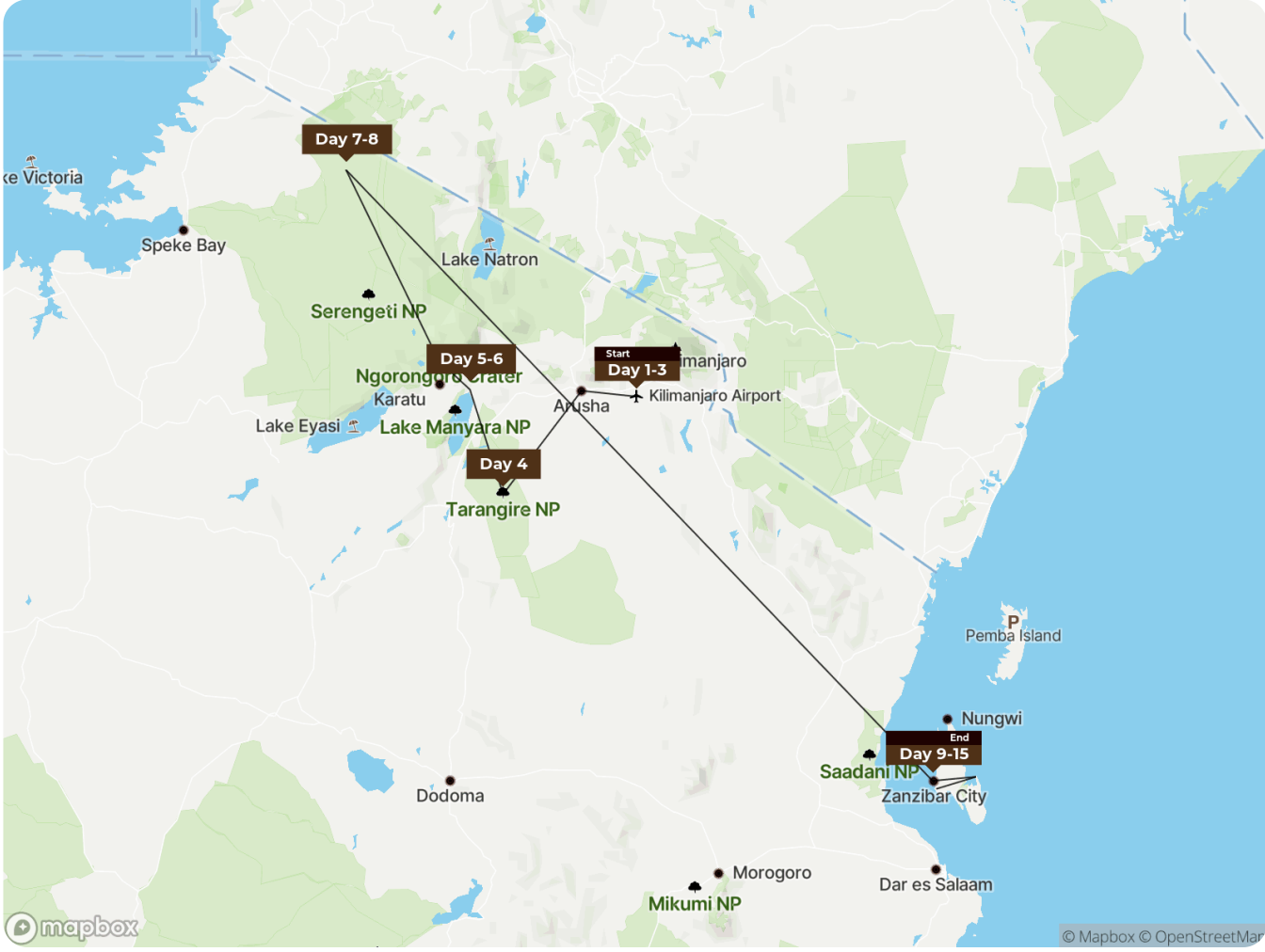 Our safaris can combine Ngorongoro with destinations such as Serengeti, Tarangire, Lake Manyara, and Zanzibar, offering a seamlessly curated Tanzanian experience.
