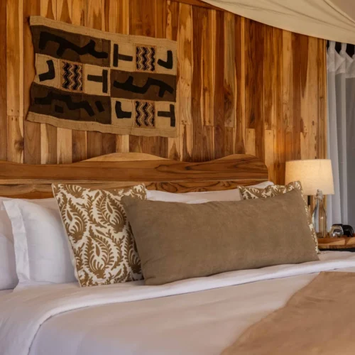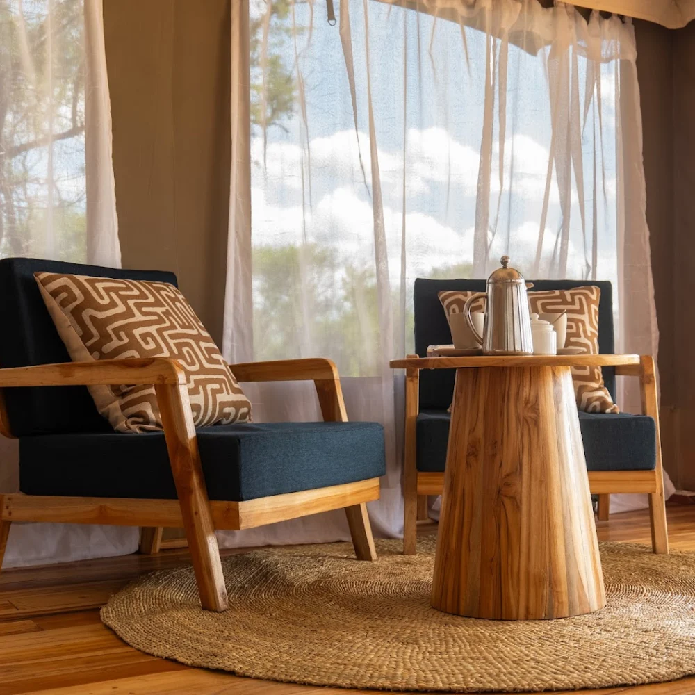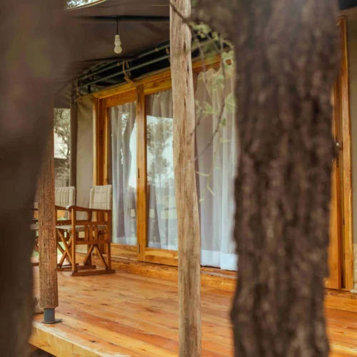 The camp features spacious safari tents set in natural surroundings, offering comfort and privacy.