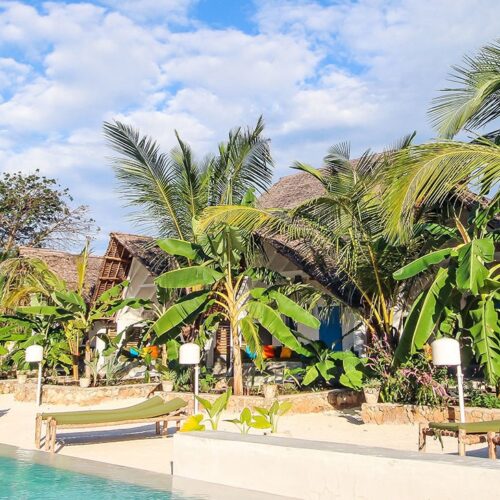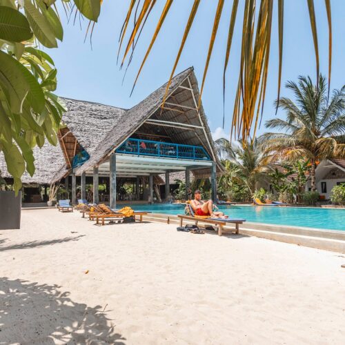 Fun Beach Hotel is a moderate beachfront hotel located on the relaxed Michamvi Peninsula, offering a friendly atmosphere, comfortable accommodation, and great value on Zanzibar’s east coast. With direct beach access, open communal spaces, and a social yet laid-back vibe, the hotel is ideal for travelers looking to unwind after a safari without the formality of a luxury resort.