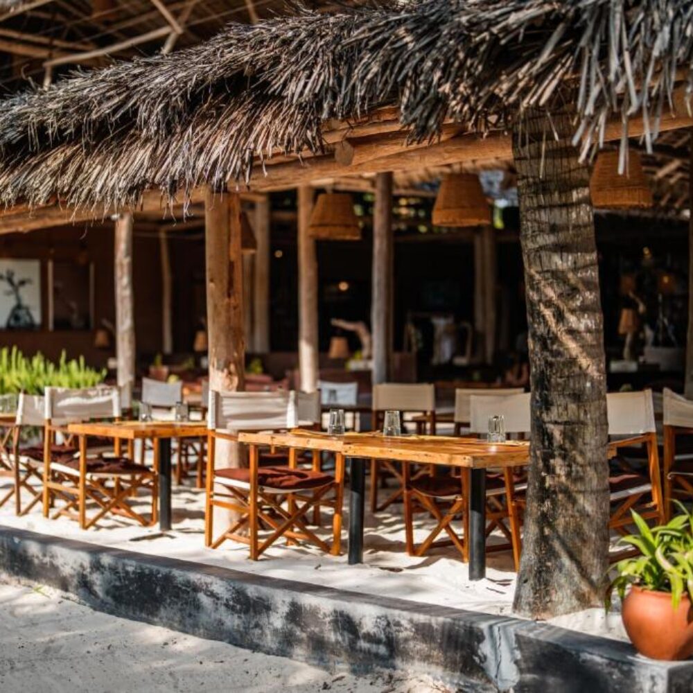Guests enjoy Half Board dining with freshly prepared meals that highlight local Zanzibari flavors and international cuisine. Ingredients are locally sourced, and seafood is often caught fresh from the nearby ocean. Dining is typically served in an open-air restaurant overlooking the beach.