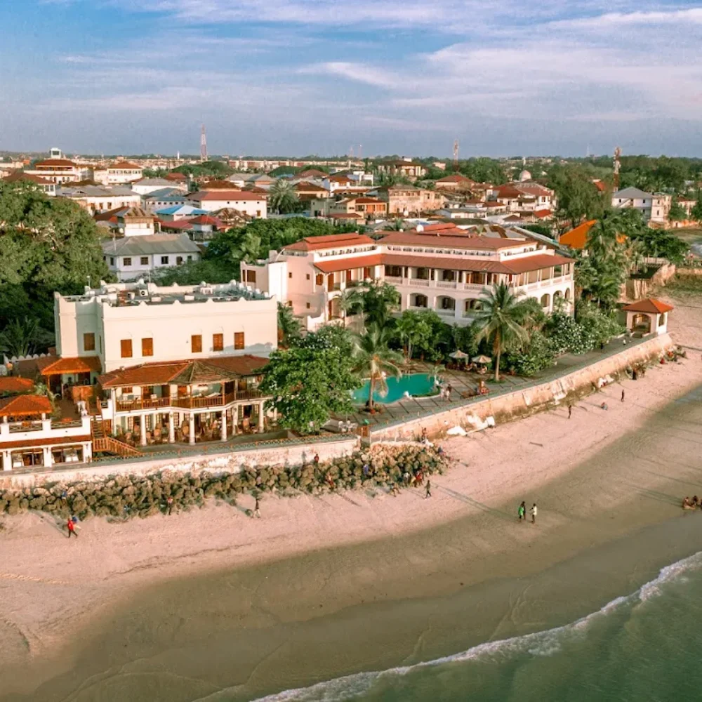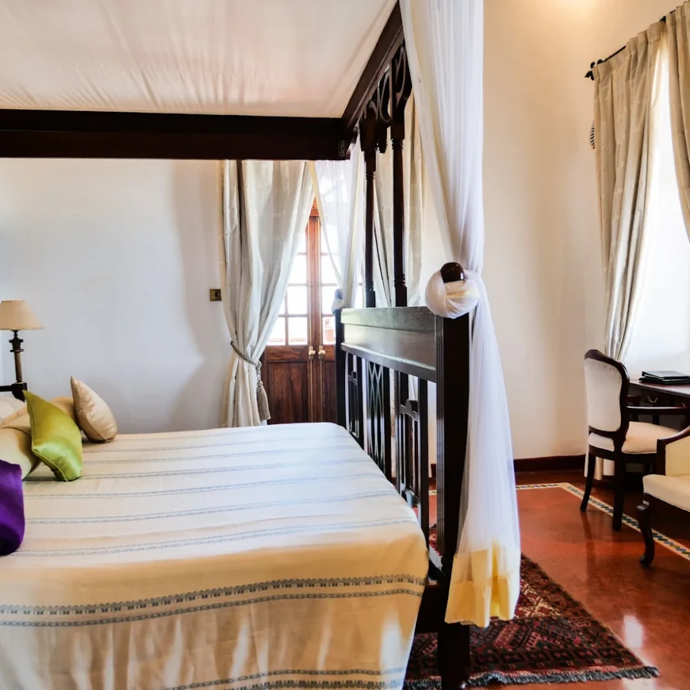 The hotel offers elegantly furnished rooms and suites, many with private balconies overlooking the Indian Ocean or the historic town. Interiors reflect traditional Swahili design, creating a timeless and comfortable stay.