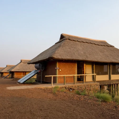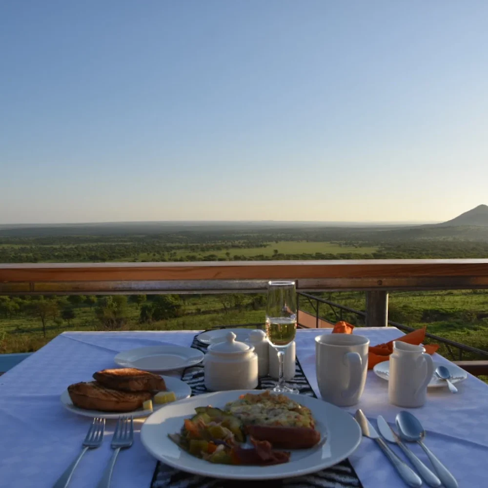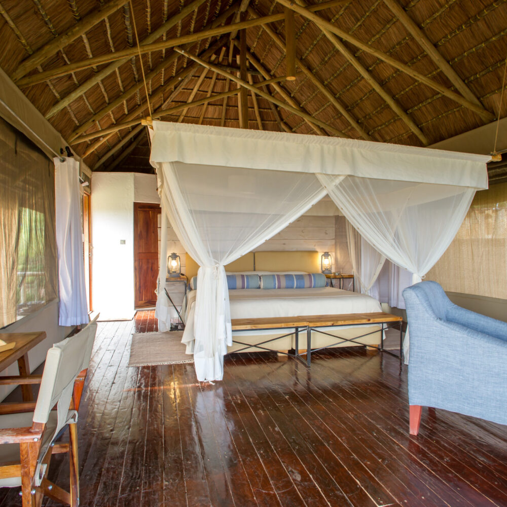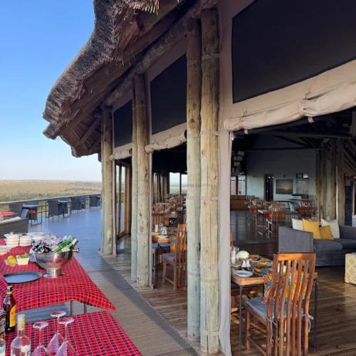 The lodge features 25 spacious tented suites, each elevated on wooden platforms with thatched roofs. The suites are tastefully designed with indoor and outdoor showers, mosquito-netted beds, and private decks offering sweeping views of the Serengeti.