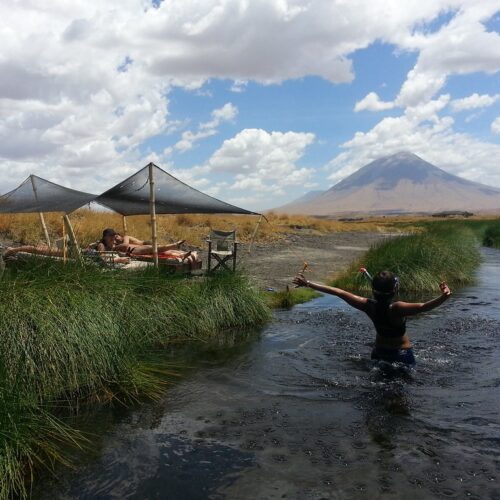 Lake Natron Camp is a remote and immersive eco-luxury camp set on the southern shore of Lake Natron, near the base of Ol Doinyo Lengai, the sacred volcano of the Maasai. Surrounded by raw wilderness, flamingo-filled soda flats, and dramatic Rift Valley escarpments, the camp offers a rare and unforgettable experience for adventurous travelers seeking something truly off the beaten path.