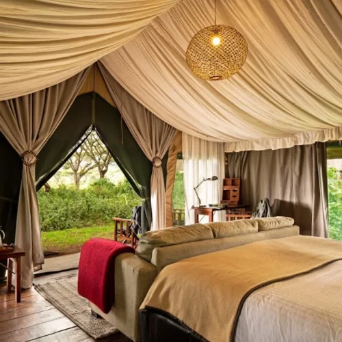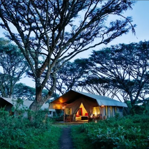 Lemala Ngorongoro Tented Camp offers an authentic and intimate safari experience on the quiet northeastern rim of the Ngorongoro Crater. Nestled in an ancient acacia forest near the Lemala access route, this seasonal tented camp provides quick and early access to the crater floor—ideal for sunrise game drives before the crowds arrive.