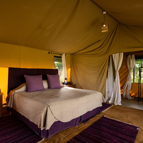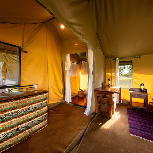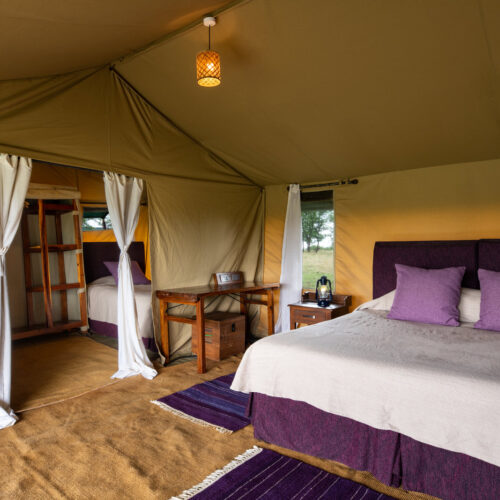 The camp features 18 spacious, well-appointed tents with en-suite bathrooms, indoor and outdoor showers, and private decks overlooking the Mara River. Each tent is designed to merge luxury with the natural surroundings, giving guests an intimate and immersive safari experience.