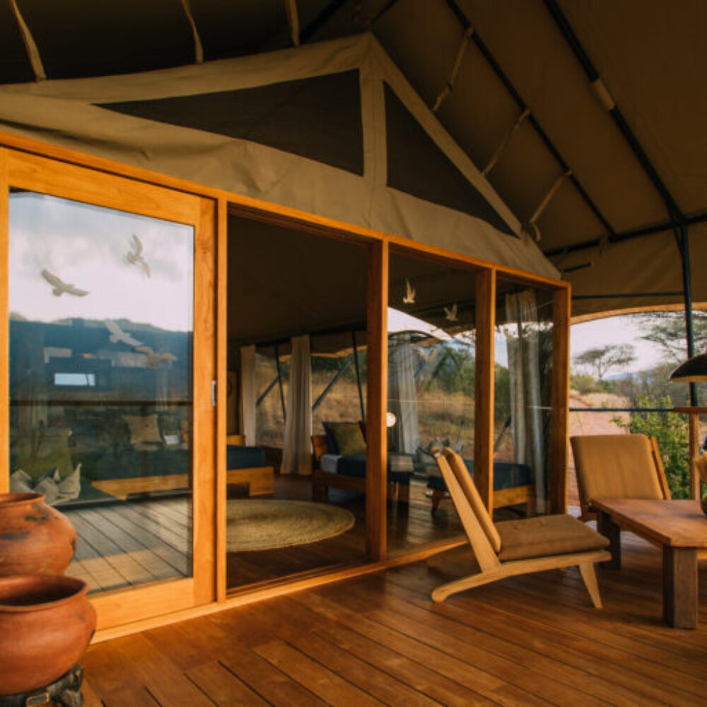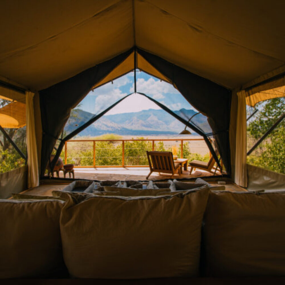 Perched on the scenic slopes of the Pare Mountains and overlooking the vast plains of Mkomazi National Park, Mkomazi Wilderness Retreat offers an ultra-private safari experience in one of Tanzania’s most pristine and off-the-beaten-path conservation areas. This exclusive eco-retreat combines breathtaking views, high-end comforts, and access to unique wildlife experiences—including the rare chance to see endangered black rhinos and wild dogs.