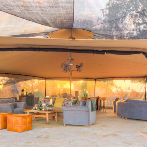 Roho ya Selous features 8 stylish and spacious safari tents, including a family unit, all designed for maximum comfort in the bush. Each tent comes with en-suite bathrooms, indoor and outdoor showers, flush toilets, solar-powered fans, and a private veranda with panoramic views.