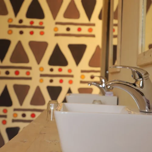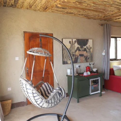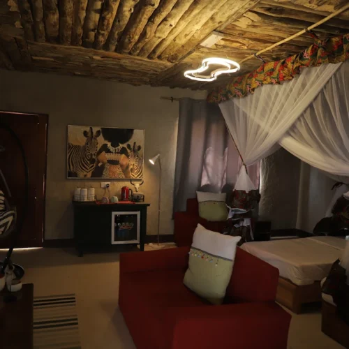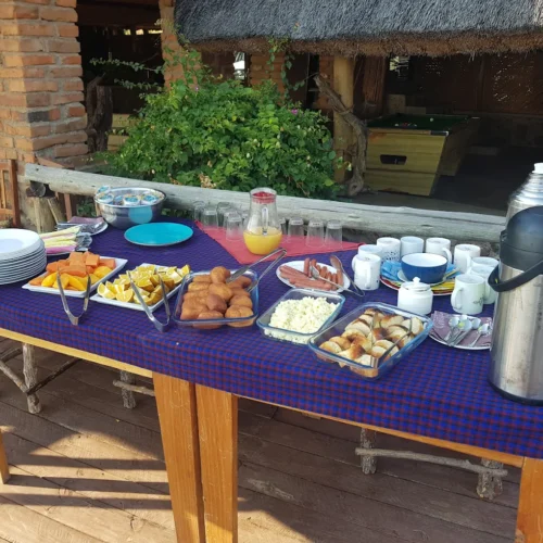 The lodge features 10 en-suite chalets, constructed with stone and thatch to blend with the environment. Each chalet is well-spaced for privacy and equipped with mosquito nets, solar-powered lighting, and private verandas to enjoy the views.