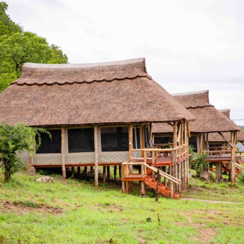 Sangaiwe Tented Lodge features 23 tented rooms on wooden platforms, plus 2 family cottages, all blending rustic charm with modern comfort.