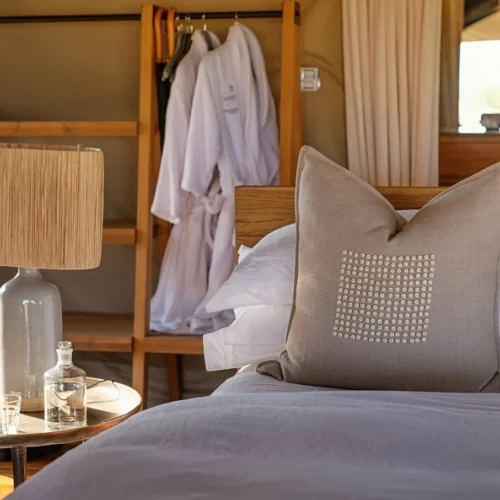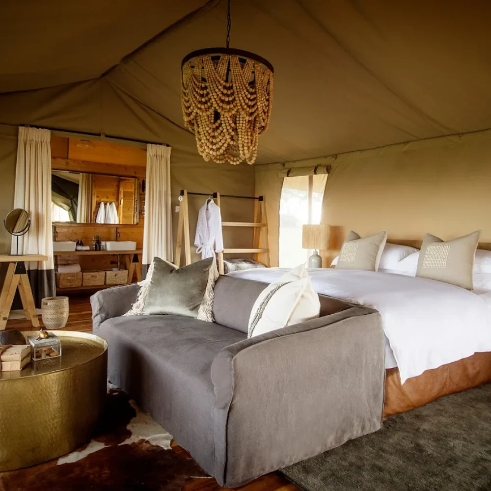 The camp features 16 spacious en-suite tents, each furnished with king-sized or twin beds, indoor and outdoor showers, and private decks overlooking the Mara River. Every tent is designed to immerse guests in the sights and sounds of the Serengeti while maintaining luxury and comfort.
