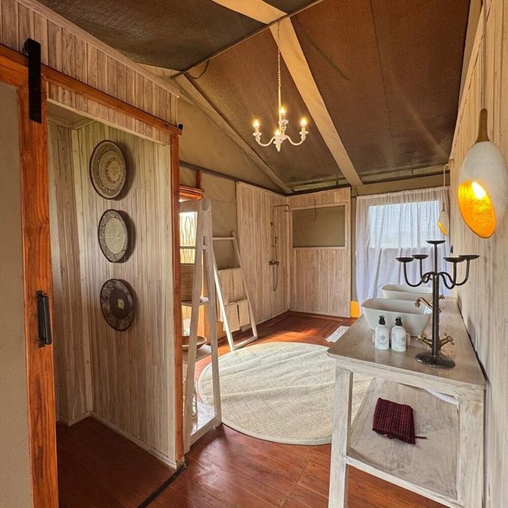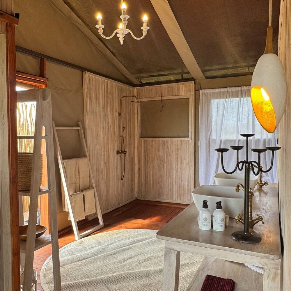 Comfortable safari tents with en-suite bathrooms.