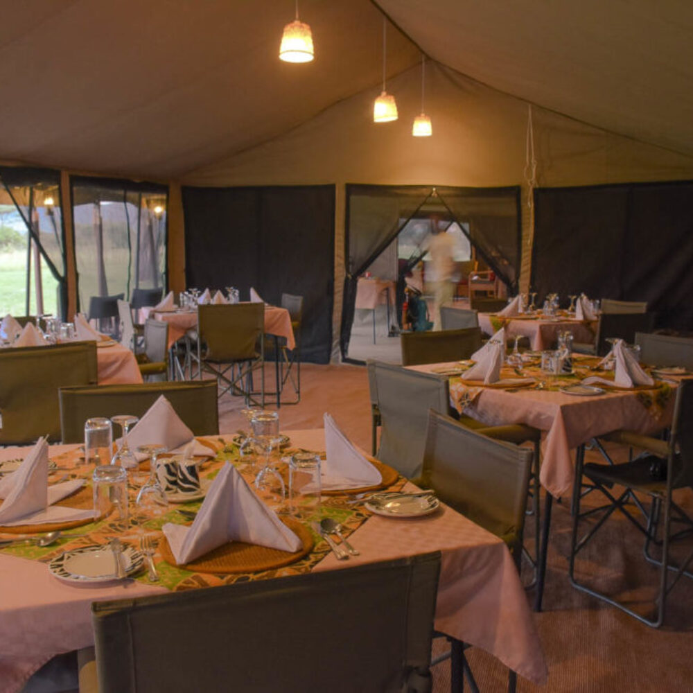 - Dining tent and lounge area