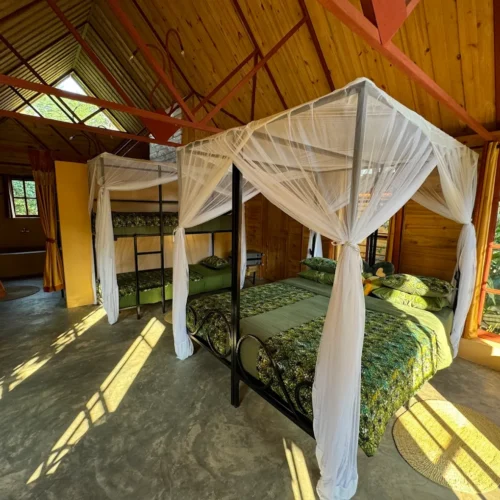 Garden Cottages: Ideal for couples or small groups—interconnected for families—with double beds, en‑suite bathrooms, and tranquil views over the lush grounds.